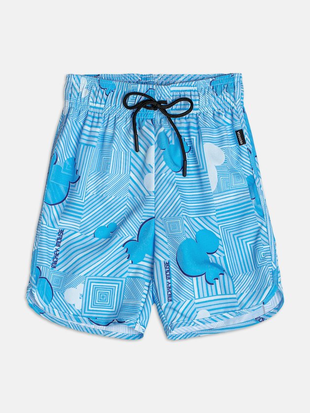 Bermuda azul vibrante com estampa geométrica em tons claros, criando um efeito visual moderno e descolado. Modelagem confortável e fresca, perfeita para acompanhar os pequenos em aventuras ao ar livre com muito estilo. Ref.: I2204