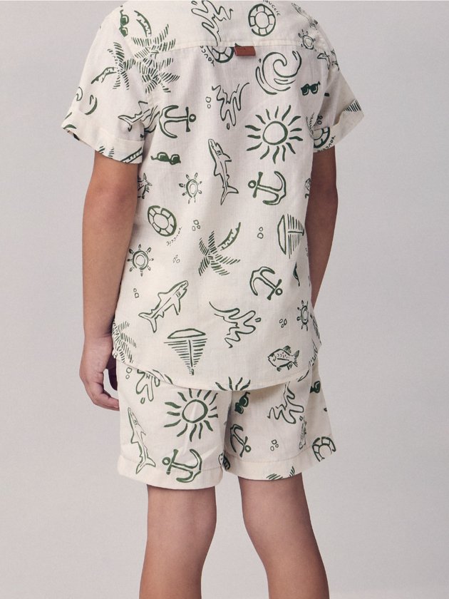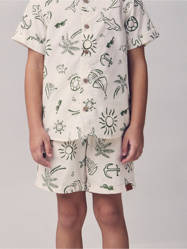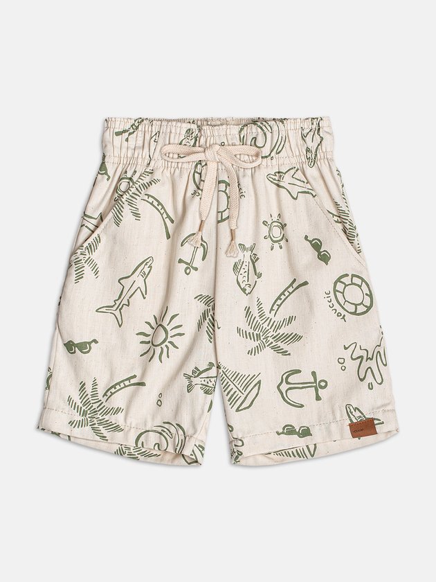Com inspiração tropical e toque descontraído, a bermuda bege com estampa tropical traz um visual leve e cheio de personalidade para os meninos. O tom neutro realça a estampa de folhagens e elementos praianos, criando uma peça versátil que combina conforto e estilo para os dias de verão. Ideal para passeios, brincadeiras ao ar livre ou momentos de lazer, essa bermuda é perfeita para acompanhar a energia e a liberdade da estação com aquele toque fresh que a Youccie oferece. Ref.: I2209