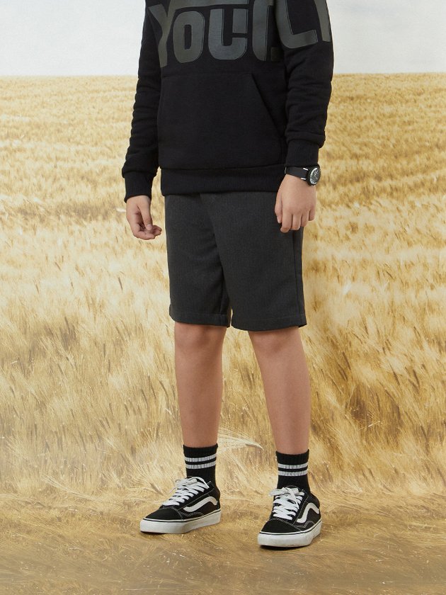 Com modelagem moderna de alfaiataria, a bermuda infantil Youccie foi desenvolvida em tecido na cor chumbo, uma peça versátil para o dia a dia dos meninos. Possui elástico na cintura com cadarço deixando a peça mais prática. A bermuda é finalizada com etiqueta personalizada emborrachada. Composição: 100% poliéster. Ref.: D1641