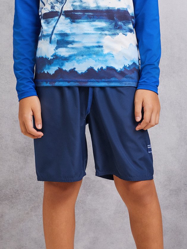 Bermuda azul Youccie em tactel para os meninos aproveitarem o verão da melhor forma, com elástico e cadarço no cós, garantindo ajuste confortável e prático. Ideal para os dias ensolarados e momentos de diversão. Composição: 92% poliéster e 8% elastano. Ref.: D1888