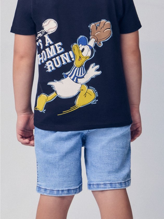 Bermuda jeans azul claro com modelagem confortável e versátil, perfeita para compor produções despojadas e cheias de estilo. O tom suave complementa a estampa vibrante da camiseta, criando um equilíbrio moderno e descontraído.