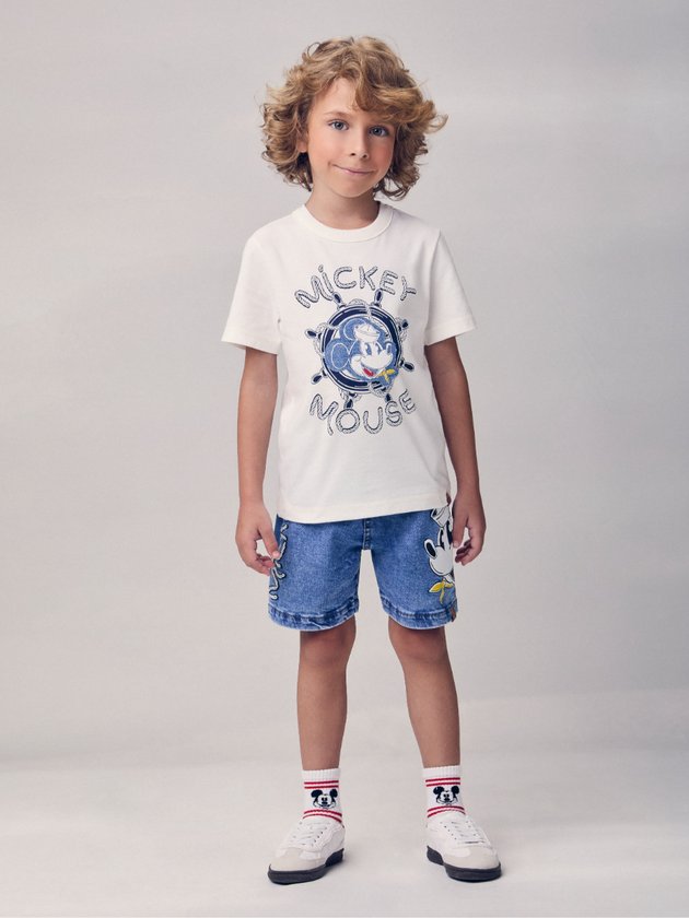 A bermuda jeans do Mickey Mouse traduz o lado urbano e divertido do verão Youccie. Com lavagem média e modelagem moderna, ela ganha ainda mais personalidade com uma estampa lateral do personagem, trazendo o universo Disney para o dia a dia dos meninos. Versátil e estilosa, acompanha todas as aventuras, dos passeios ao ar livre aos encontros com os amigos, sempre garantindo conforto, liberdade e aquele toque especial que só a Youccie entrega.