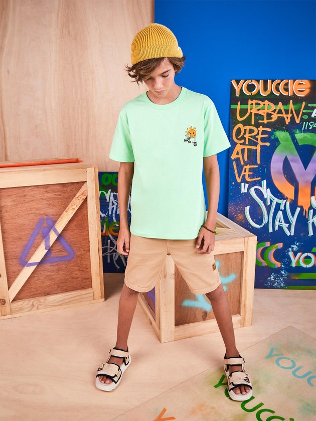 Desenvolvida em sarja a bermuda Youccie super confortável é ideal para o dia a dia, no cós conta com botão de metal para fechamento, além de frente e costas com bolsos funcionais, compõe looks irados com camisetas e casacos. Os garotos vão amar essa bermuda, aposte! Composição: 85% Algodão no mínimo. Ref.: D1166