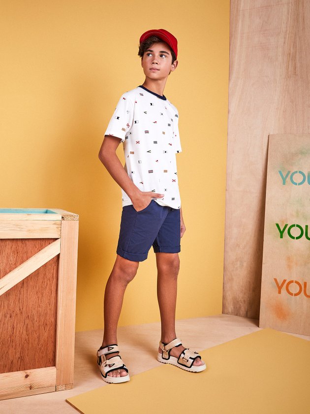 A bermuda marinho Youccie foi confeccionada em sarja e é a peça perfeita para os meninos comporem looks modernos, em seus detalhes ela conta com elástico no cós, cadarço decorativo e bolso funcional, combina perfeitamente com camisetas e regatas e é finalizada com etiqueta decorativa. Composição: 100% algodão. Ref.: D1186
