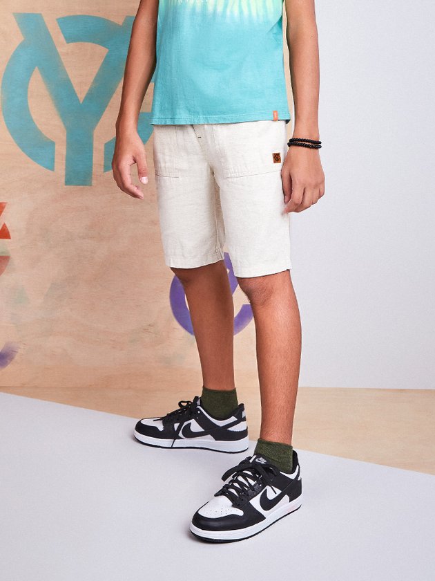 Bermudas feitas em tecidos naturais garantem um look arrumado e moderno, a bermuda de linho Youccie foi feita em cor cru e conta com elástico no cós com cadarço decorativo, seus looks podem ser combinados com camisa de botões ou camisetas modernas, eles vão amar. Composição: 66% algodão, 23% viscose e 11% linho. Ref.: D1199
