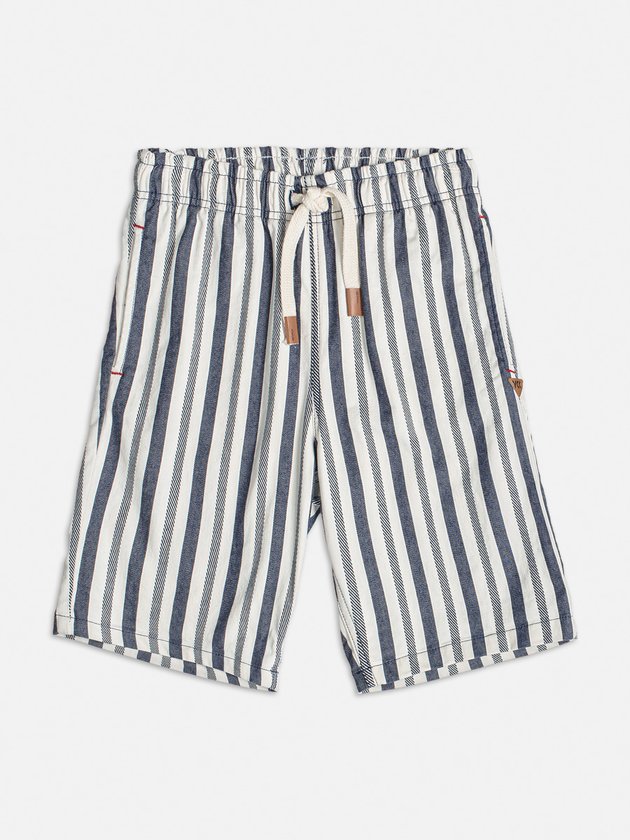A bermuda listrada da Youccie é uma peça estilosa e confortável para os meninos usarem no dia a dia. Feita com tecido plano de alta qualidade, ela combina elegância e praticidade. Possui elástico e cadarço na cintura, proporcionando um ajuste ideal no corpo. Composição: 98% algodão e 2% elastano. Ref.: D1878