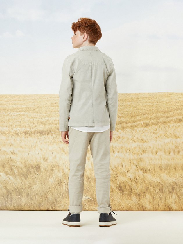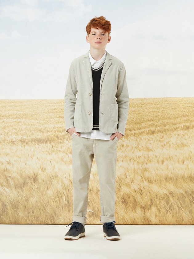 O blazer infantil Youccie é uma peça que faz combinações para ocasiões especiais com um visual mais charmoso. Elaborado em tecido de sarja cotelê traz conforto e deixa os meninos com liberdade nos movimentos. Abertura frente com botões personalizados, lateral com etiqueta decorativa em corino e bolsos funcionais. Composição: 98% algodão e 2% elastano. Ref.: D1625