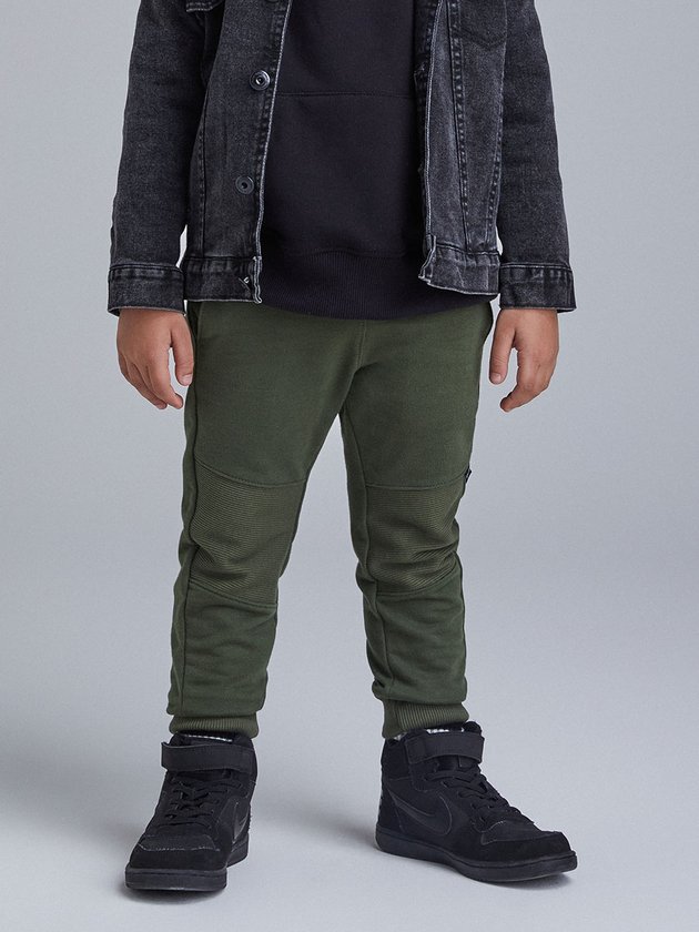 Esta calça verde com detalhes texturizados nas pernas é tudo que eles precisam para um visual cool e confortável. O ajuste com cordão garante a praticidade, enquanto o tecido macio permite que eles se movam livremente. Um item essencial para um look urbano cheio de personalidade!