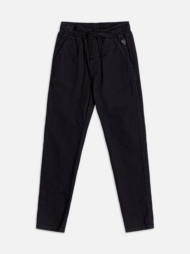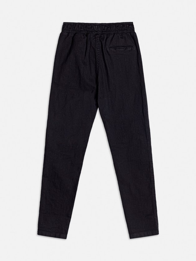 Complemente o guarda-roupa com essa calça jeans preta, que une praticidade e estilo. Com ajuste em cordão e bolsos funcionais, é perfeita para composições despojadas e modernas, ideal para o cotidiano e momentos casuais.