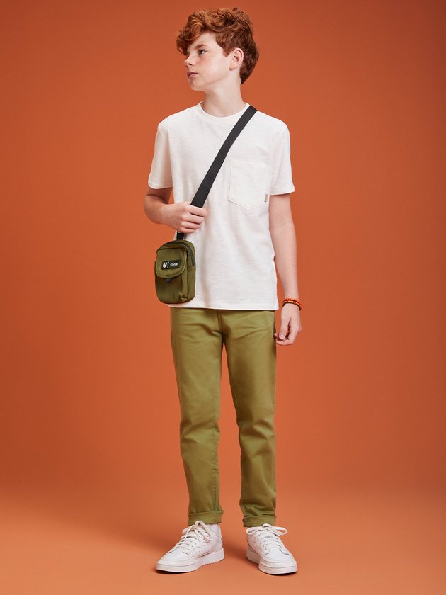 Feita para proporcionar estilo e conforto em qualquer ocasião, essa calça de sarja verde é uma escolha versátil para meninos modernos. Seu tecido macio e durável garante liberdade de movimento e resistência, perfeita para o dia a dia. O design clássico com bolsos laterais e fecho por zíper e botão traz uma aparência sofisticada, enquanto o corte slim confere um ajuste ideal.