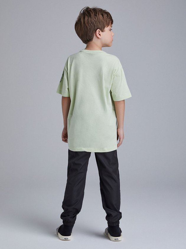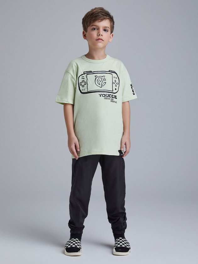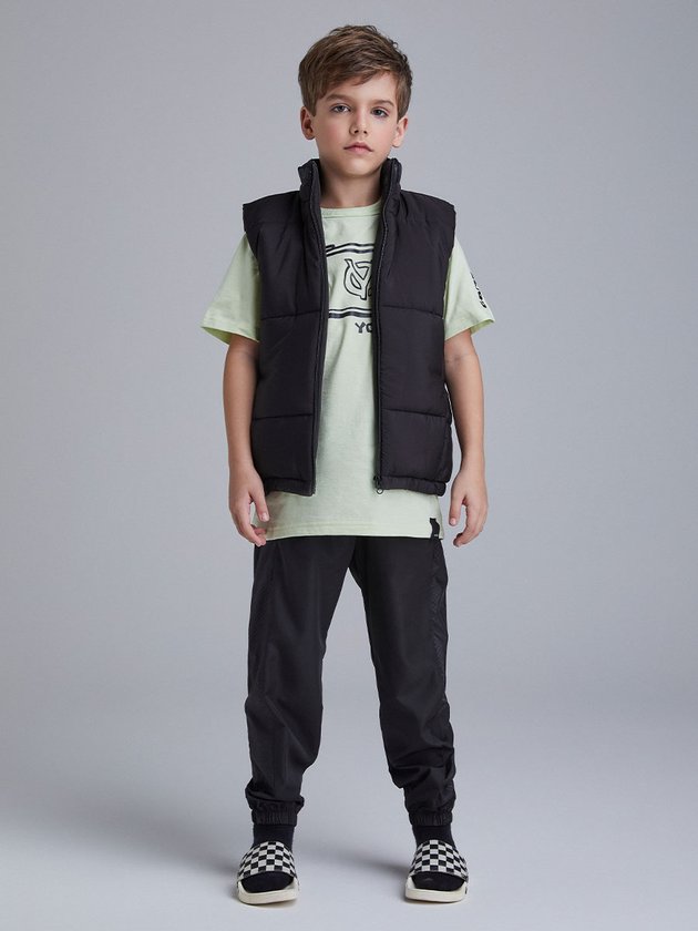 A calça preta de moletom infantil Youccie é confeccionada em tecido de algodão, proporcionando conforto aos meninos. Com recorte e barra em ribana, elástico na cintura e etiqueta decorativa, é uma peça básica e versátil, ideal para diversas ocasiões, garantindo praticidade no dia a dia. Composição: 100% algodão. Ref.: D2028