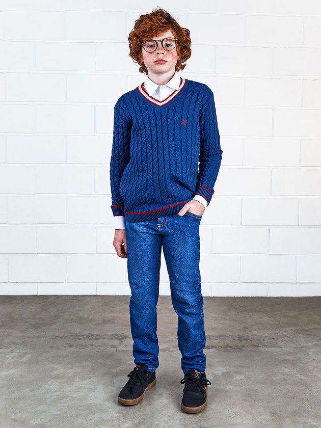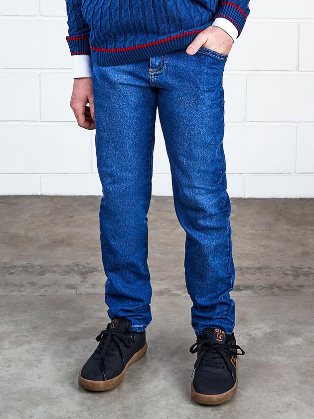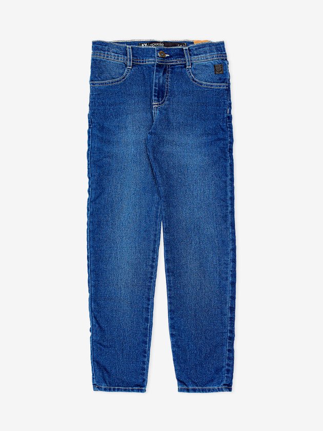 Calça Jeans é um clássico no guarda roupa dos meninos, além de moderna ela traz todo conforto devido a sua porcentagem de elastano, desenvolvida com lavagem média ela traz em seus detalhes bolso funciona, elástico no cós com regulagem e etiqueta decorativa em couro sintético, eles vão amar. Composição: 75% algodão, 22% poliéster e 3% elastano. Ref.: D1015