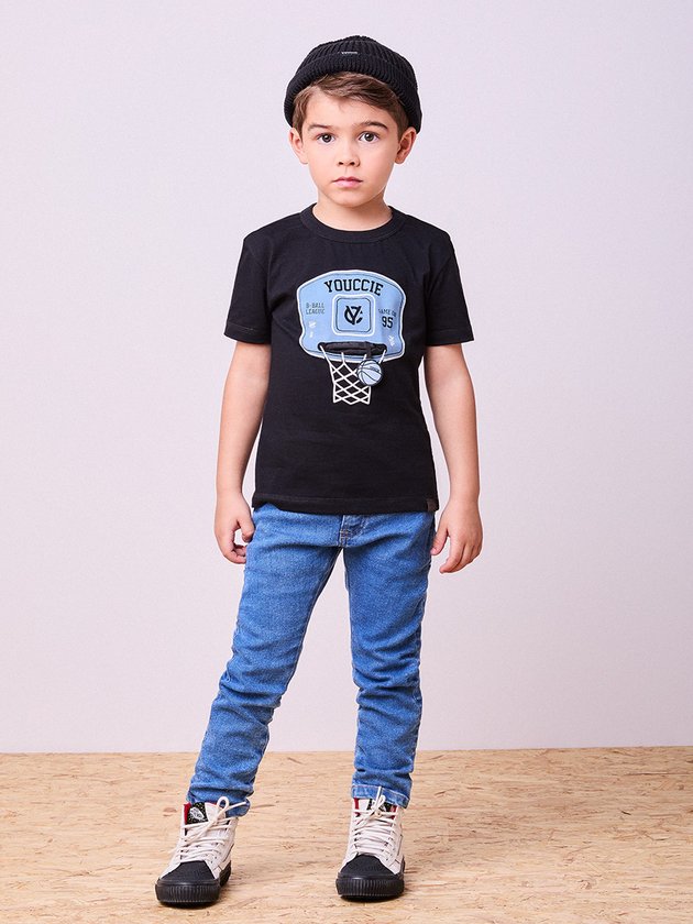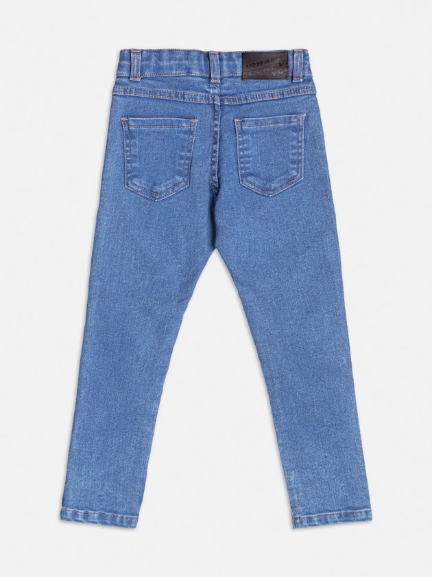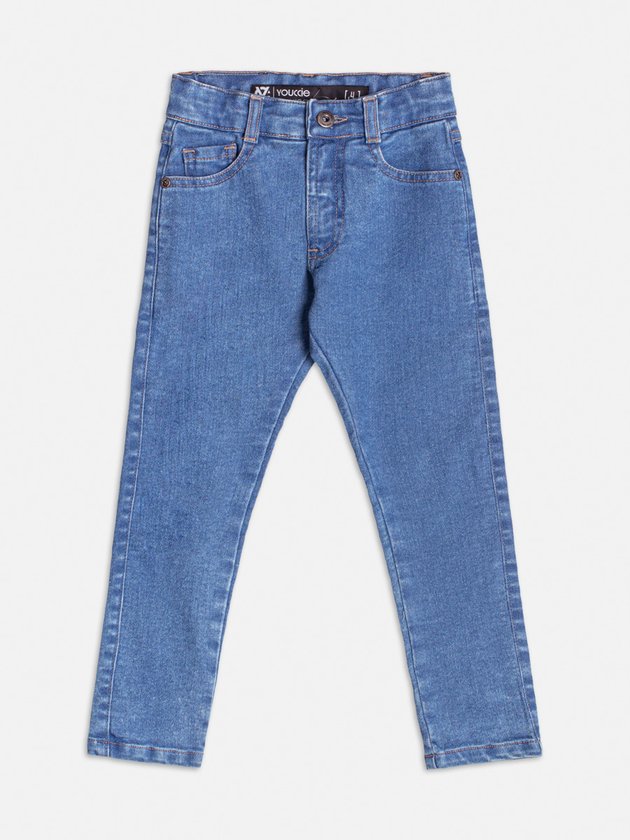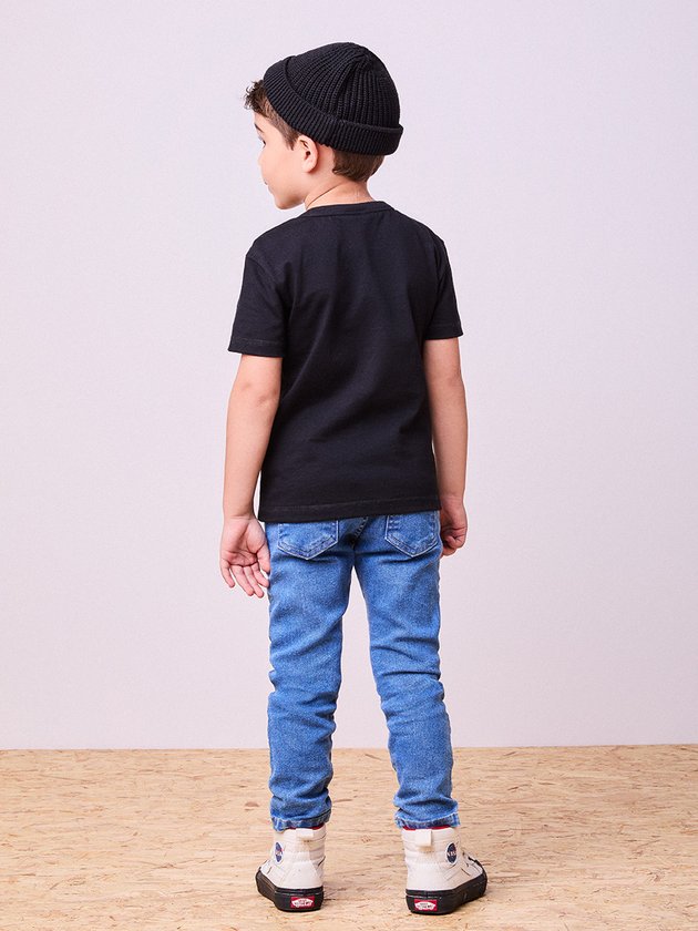 A calça jeans é um curinga no guarda-roupa dos meninos. Confeccionada em tecido flexível, ela proporciona ajuste confortável e muito estilo. Com lavagem azul clara e bolsos funcionais, é ideal para looks casuais ou para ocasiões mais arrumadas quando combinada com camisa.