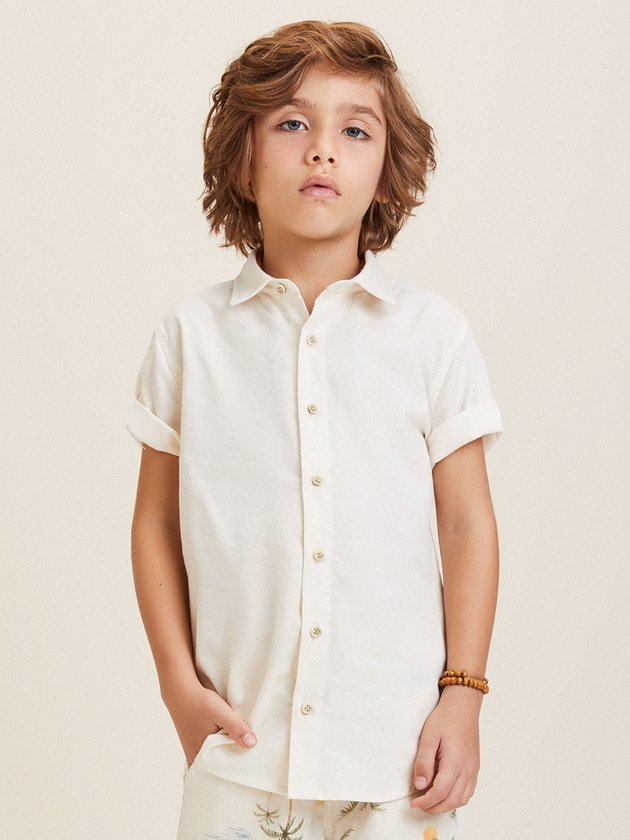 Camisa infantil Youccie foi confeccionada em tecido cru, possui fechamento frontal por botões, aumentando a praticidade da peça. Perfeita para os meninos usarem em ocasiões especiais. Composição: 55% algodão, 30% viscose e 15% linho. Ref.: I1293