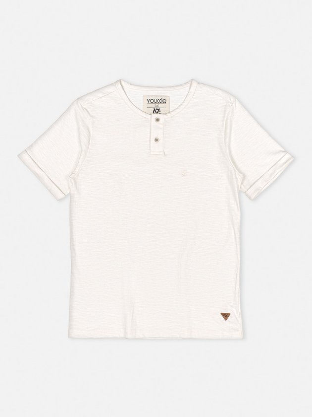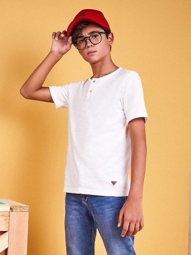 A Camiseta Infantil Youccie foi desenvolvida no conforto da malha off white com modelagem slim, nos detalhes traz abertura com botões e etiqueta personalizada na barra. Uma peça confortável e versátil para o dia a dia dos meninos. Composição: 100% algodão. Ref.: D1173
