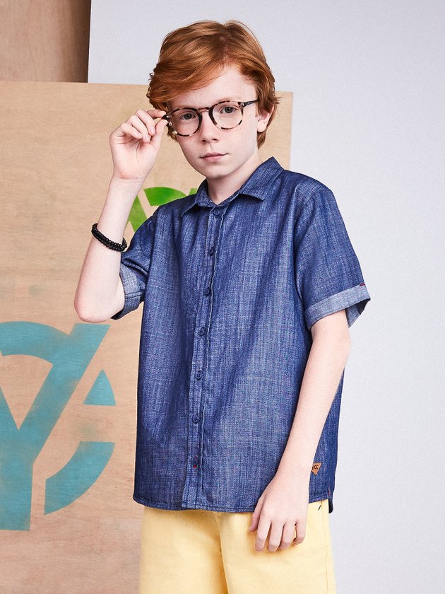 Camisa social nunca é demais no guarda roupa dos meninos, com design clássico ela compõe diversos looks com calça ou bermuda ideal para composições arrumadas para eventos como festinhas de aniversário. Em seus detalhes foi confeccionada em tecido leve, na cor azul e traz abertura com botões. Composição: 66% algodão e 34% liocel. Ref.: D1170