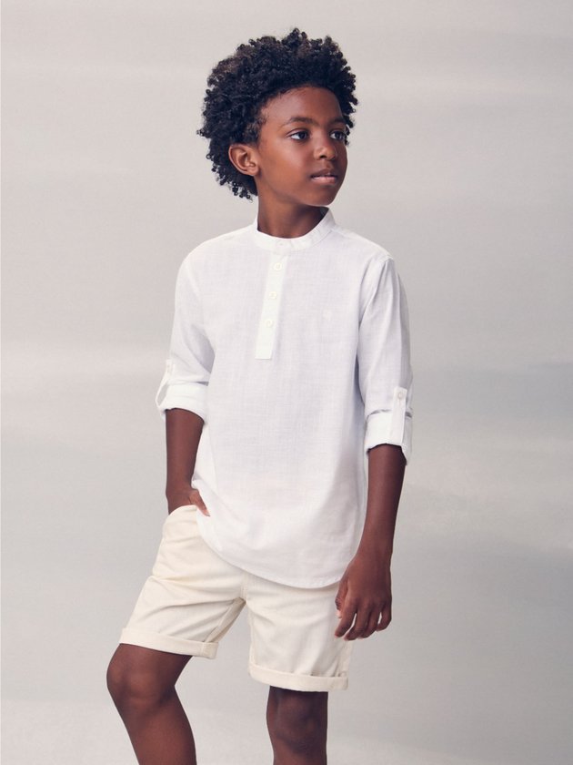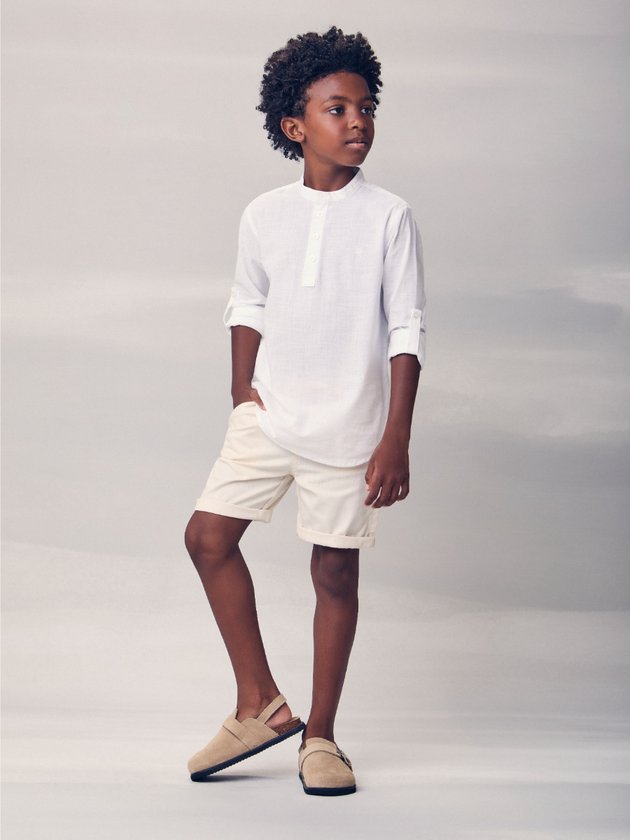 Perfeita para compor looks cheios de leveza, a camisa off com martingale Youccie traz aquele mood fresh e versátil que combina com qualquer ocasião de verão. O martingale nas mangas permite brincar com diferentes estilos, seja mais arrumadinho ou despojado, enquanto o tom off white ilumina e deixa o visual fácil de combinar com bermudas coloridas ou jeans. Ideal para meninos que gostam de liberdade, conforto e autenticidade. Ref.: D2799