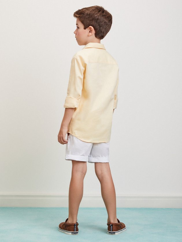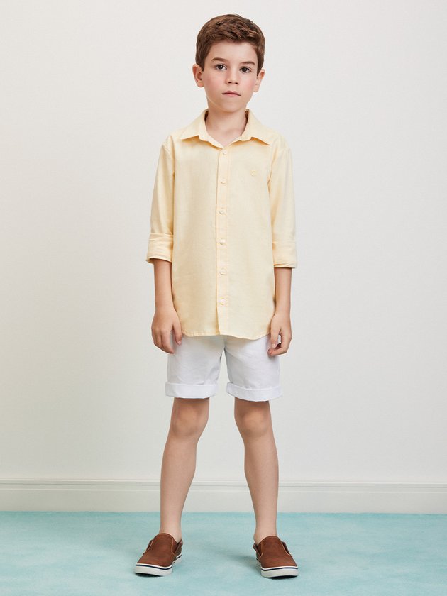 Camisa de manga longa amarela, com corte clássico e botões frontais, ideal para ocasiões que pedem um visual mais arrumado sem perder o conforto. O tecido leve torna a peça uma ótima escolha para dias amenos, garantindo estilo e sofisticação.