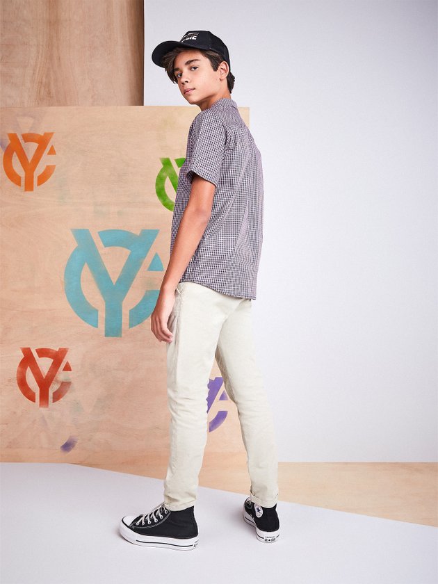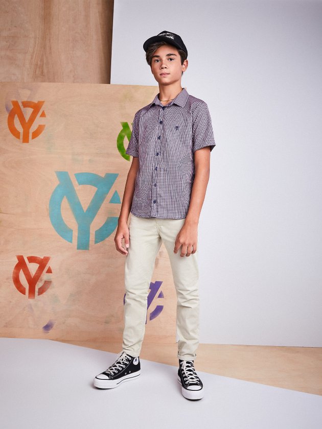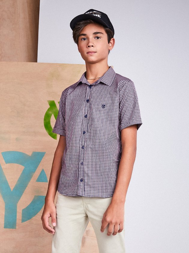 Camiseta social nunca é demais no guarda roupa dos meninos, com design clássico ela compõe diversos looks com calça ou bermuda ideal para composições arrumadas para eventos como festinhas de aniversário. Em seus detalhes foi confeccionada em tecido xadrez com bordado da marca e traz abertura com botões. Composição: 100% algodão. Ref.: D1180