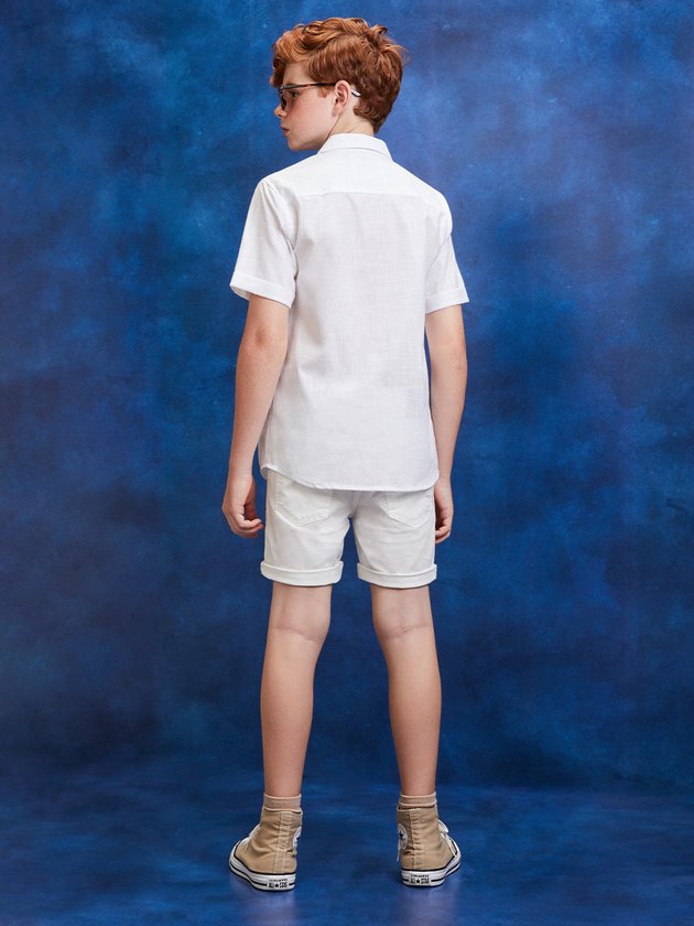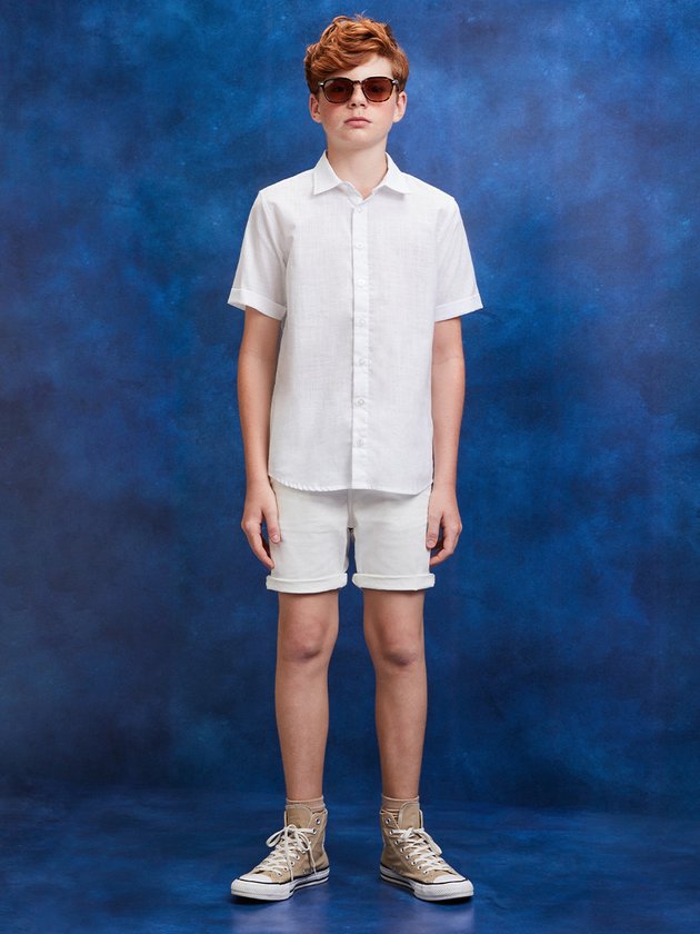 A camisa branca Youccie para meninos é confeccionada em cotton de alta qualidade, proporcionando conforto. Seu destaque está na frente, onde apresenta um elegante bordado da marca. Além disso, possui uma etiqueta decorativa que complementa o visual. Esta peça versátil é perfeita para criar combinações estilosas em diversas ocasiões. Composição: 100% algodão. Ref.: D1859