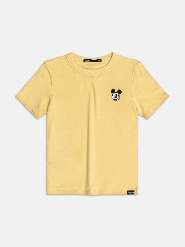 Super leve e estilosa, a camiseta amarela destaca o icônico Mickey em bordado no peito. Uma peça básica que transforma qualquer produção, trazendo cor e alegria para os looks de verão dos meninos. Ideal para usar sozinha ou em sobreposições, sempre com conforto e personalidade. Ref.: I2413