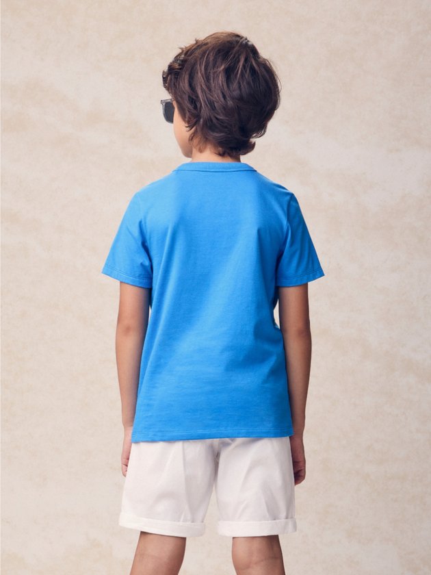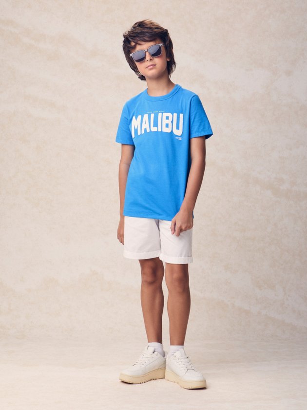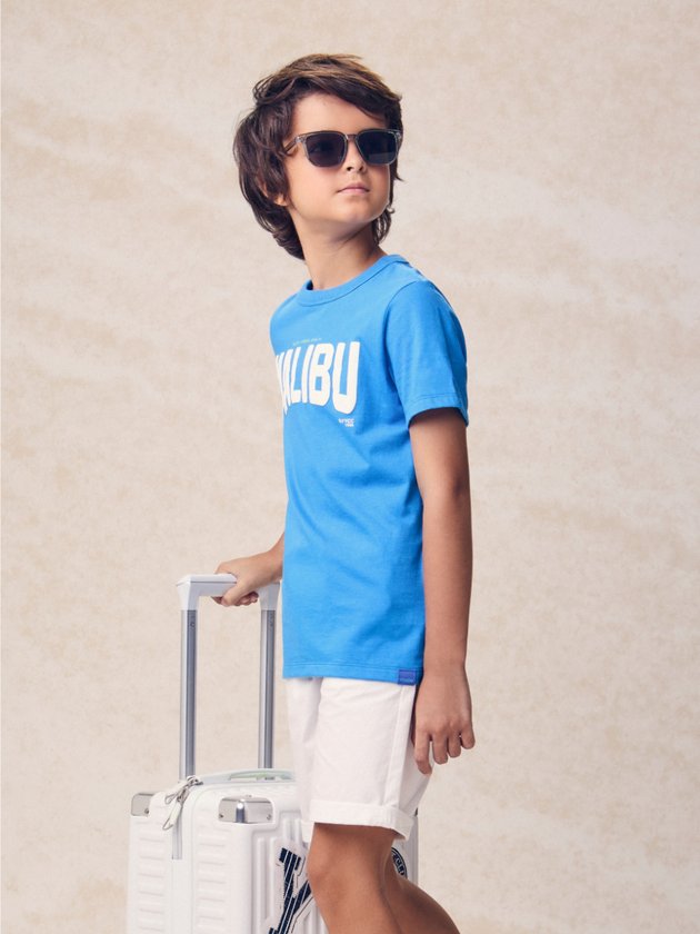 O mood californiano invade o verão com a camiseta azul de estampa Malibu. Toque fresh, visual leve e conforto para dias de sol e passeios inesquecíveis. Ref.: D2791