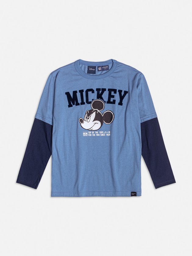 Conforto e estilo se unem nesta camiseta azul manga longa com estampa do Mickey Mouse. Perfeita para os fãs da Disney, a peça é ideal para composições casuais em dias mais frescos.