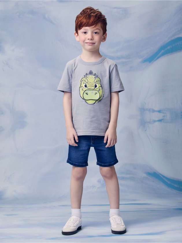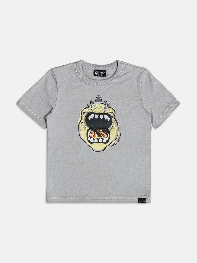 A Camiseta Infantil Masculina com Dino Interativo é perfeita para meninos que adoram peças criativas e confortáveis. Confeccionada em malha macia de alta qualidade, proporciona caimento leve e liberdade de movimentos para todas as ocasiões. O destaque fica por conta da estampa frontal de dinossauro com detalhe interativo de abrir e fechar a boca adicionando ludicidade e diversão ao visual, tornando a peça única e cheia de personalidade. O tom cinza neutro facilita as combinações com bermudas ou calças, criando produções modernas e descoladas. Parte da coleção Youccie Verão 26 — Coast House, a camiseta traduz o DNA urbano e criativo da marca, trazendo moda, conforto e imaginação em uma proposta fashion e autêntica.