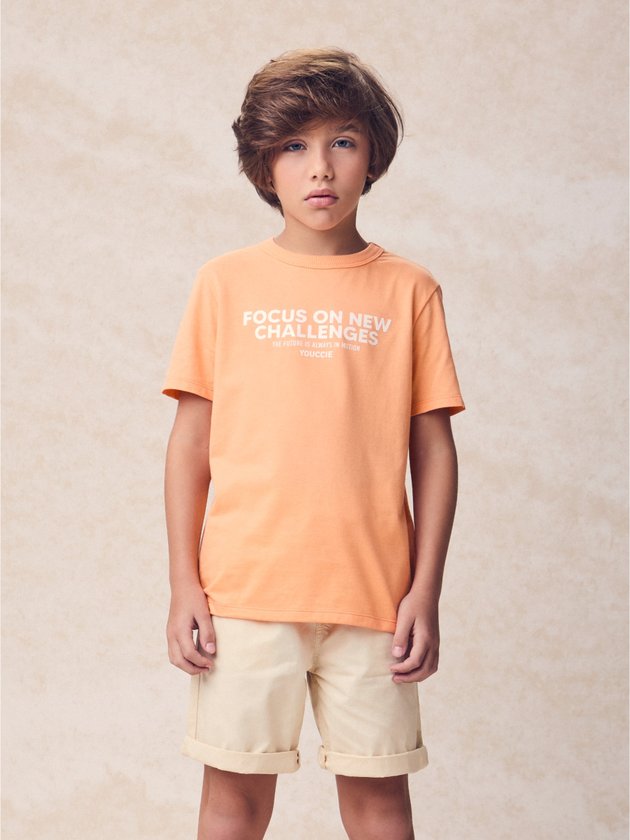 Camiseta Laranja com Estampa em Lettering
