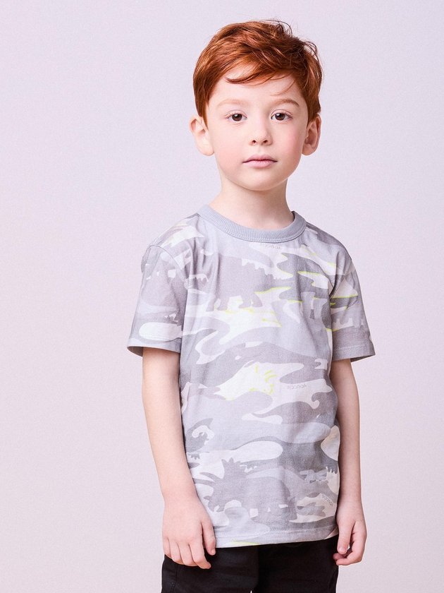 Com estampa camuflada de dinossauros em tons de cinza, branco e detalhes neon, essa camiseta é ideal para quem curte estilo urbano com um toque aventureiro. O shape clássico valoriza o visual moderno. Ref.: I2066