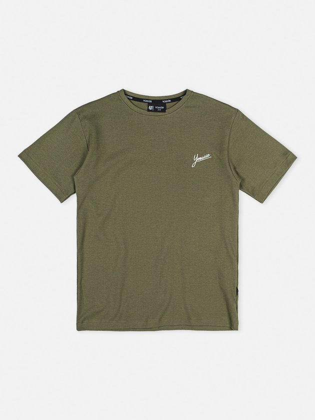 Simples e cheia de charme, esta camiseta verde militar é perfeita para composições mais casuais. Confortável e moderna, ela combina com diversos estilos e ocasiões.
