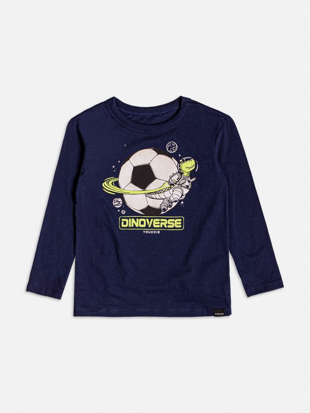 Prepare-se para uma viagem intergaláctica com o universo Dinoverse! Essa camiseta manga longa traz um dino astronauta jogando futebol no espaço, em uma combinação perfeita de criatividade, tendência e muito estilo. O toque neon realça a estampa divertida e moderna. Ref.: I1915