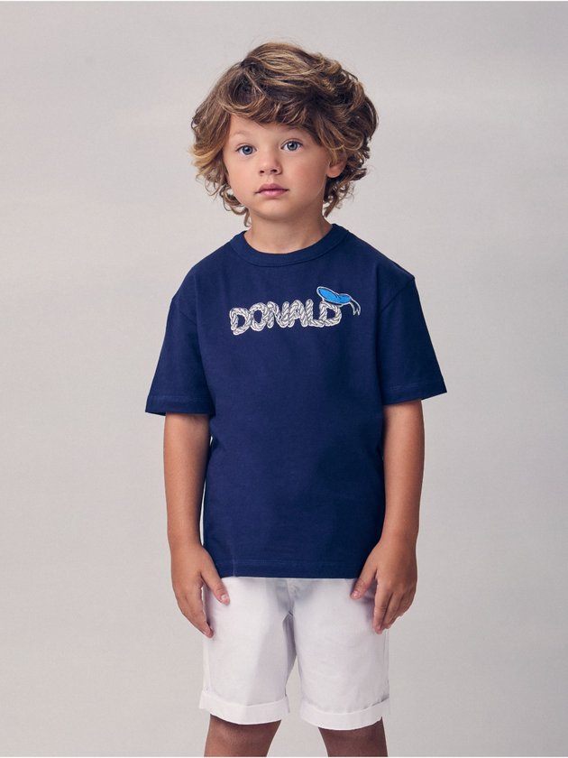 O azul marinho ganha vida com a estampa vibrante do Donald Duck, criando uma camiseta cheia de personalidade para os meninos que adoram o universo Disney. Com caimento confortável e toque macio, essa peça é perfeita para acompanhar brincadeiras, passeios e momentos de lazer durante o verão, unindo estilo, frescor e muita diversão. Ref.: I2167