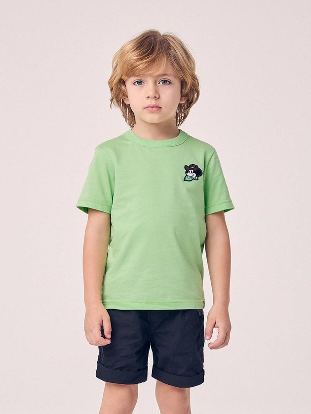 A Camiseta Infantil com Patch do Cowboy Mickey traz aquele mix perfeito entre simplicidade e estilo. O patch do Mickey em versão cowboy adiciona um detalhe descolado que destaca a peça sem pesar no visual. Confeccionada em malha suave, garante conforto térmico e toque macio, acompanhando a rotina das crianças com liberdade total nos movimentos. A modelagem casual facilita composições com Bermuda Menino Youccies, calças jeans ou peças esportivas, criando looks práticos para passeios, escola ou momentos de lazer. É resistente, confortável e versátil, ideal para quem busca uma camiseta charmosa e funcional no dia a dia infantil.