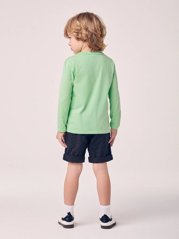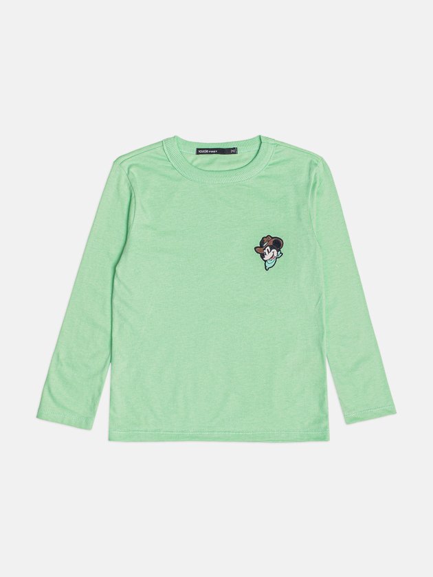 A Camiseta Infantil com Patch do Cowboy Mickey é perfeita para acompanhar as aventuras dos pequenos nos dias fresquinhos. Com manga longa, protege do vento sem pesar, mantendo o visual leve e descontraído. O tom de verde claro é moderno e fácil de combinar com jeans, joggers ou Bermuda Menino Youccies básicas. Na frente, o patch do Mickey em versão cowboy deixa a peça ainda mais divertida, com jeitinho de look favorito do guarda-roupa. Confeccionada em malha macia, oferece toque suave na pele e liberdade de movimentos para brincar, correr e explorar o mundo. Ideal para escola, passeios em família e momentos especiais, reúne conforto e estilo em um só look.