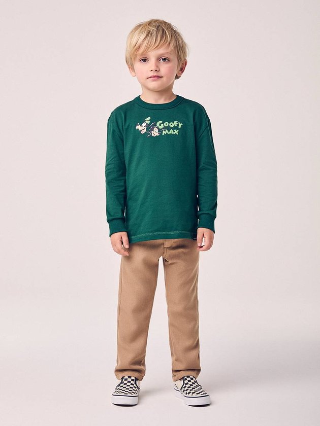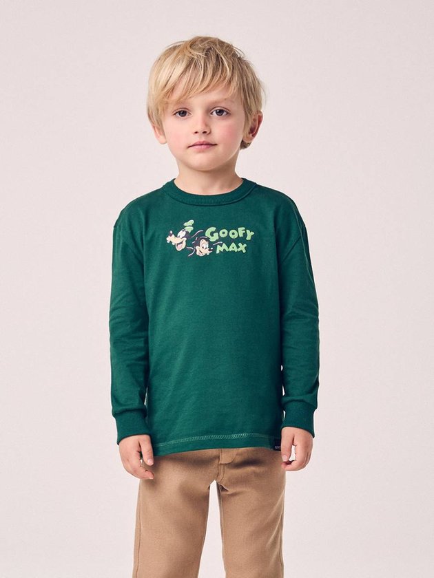 A Camiseta Infantil do Goofy and Max foi feita pra quem curte aquele visual cheio de alegria e vibe Disney. Com estampa frontal do duo e um super desenho nas costas, ela entrega presença sem esforço. O verde escuro traz um ar moderninho, enquanto o tecido macio garante conforto o dia todo. Modelagem leve, mangas longas e acabamento reforçado que aguenta bem a rotina das crianças. Perfeita para usar com jeans, sarja ou moletom, é daquelas peças que viram favoritas no armário rapidinho.