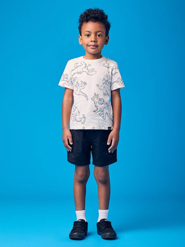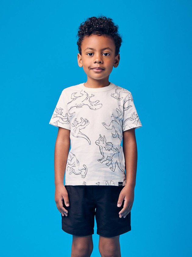 A Camiseta Infantil Estampada de Dinossauros é aquela peça certeira para os pequenos que curtem imaginar mundos pré-históricos. O modelo recebe uma estampa contínua de vários dinos em traços estilizados, criando um visual moderno e super divertido. O fundo off-white facilita combinações e deixa a peça ainda mais versátil para o dia a dia. Feita em tecido macio e confortável, acompanha brincadeiras, passeios e momentos de lazer com total liberdade. Perfeita para quem gosta de um look criativo sem abrir mão do conforto, ela entrega estilo, praticidade e aquele charme jurássico que conquista qualquer criança.