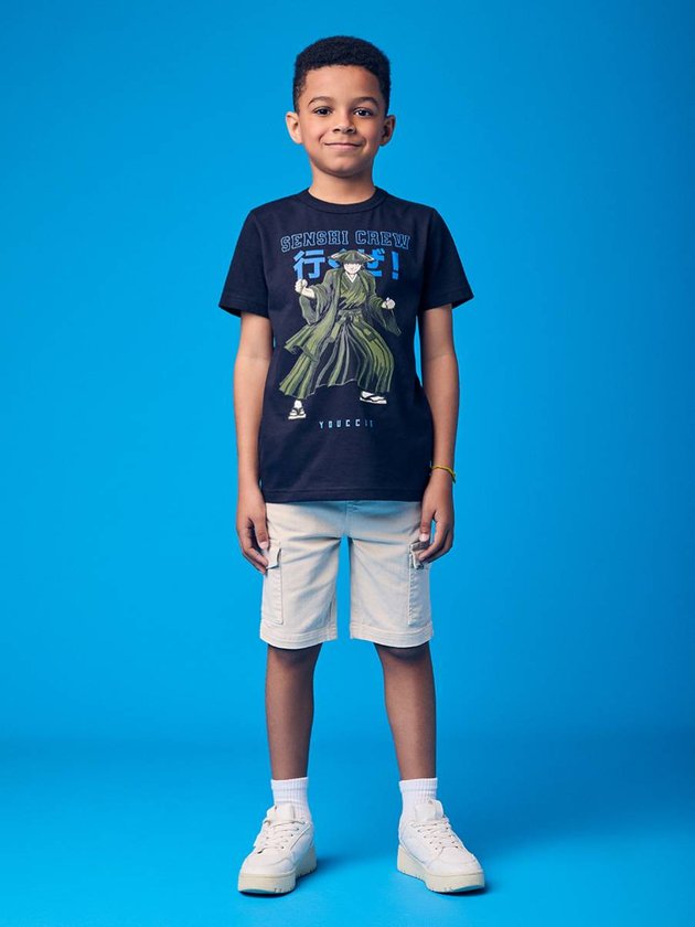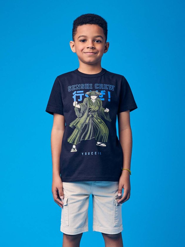 A Camiseta Infantil de Senshi Crew Youccie é uma peça cheia de estilo e significado. Inspirada na estética japonesa, traz estampa frontal com ideogramas e o nome Senshi Crew, traduzindo força e autenticidade. Produzida em malha de algodão leve, garante conforto e liberdade de movimento. A cor preta reforça o visual moderno e versátil, combinando facilmente com calças jeans, joggers ou Bermuda Menino Youccies. Ideal para meninos que gostam de peças com identidade e o toque urbano característico da Youccie.