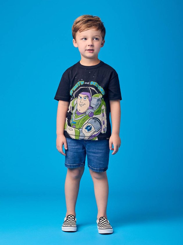 A Camiseta Infantil do Buzz Lightyear é perfeita para quem curte Toy Story e adora um visual cheio de atitude. Traz uma estampa frontal grande e supercolorida do herói espacial, com detalhes vibrantes que chamam atenção e dão aquele toque futurista ao look. Confeccionada em material macio, oferece conforto o dia inteiro, ideal para brincar, passear ou usar na escola. O caimento é leve e fácil de combinar com jeans, Bermuda Menino Youccies ou joggers. A peça entrega estilo divertido sem esforço, tornando-se uma opção certeira para crianças que amam aventura e personalidade. Ref.: I2559