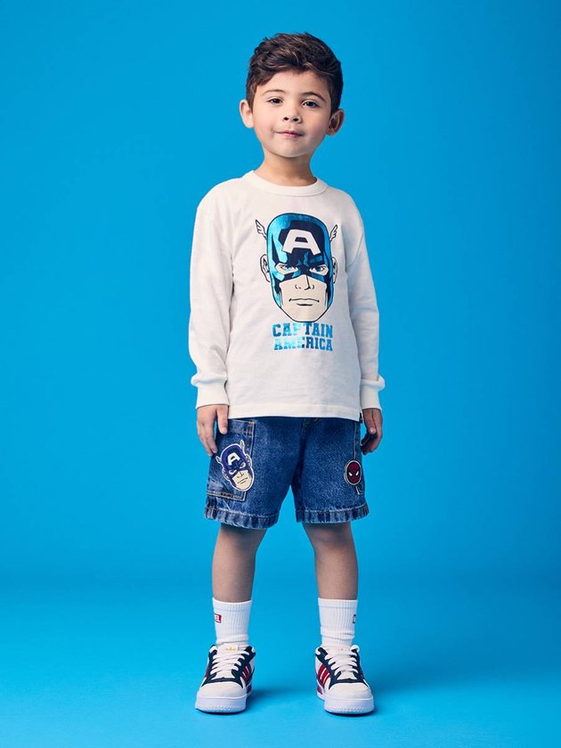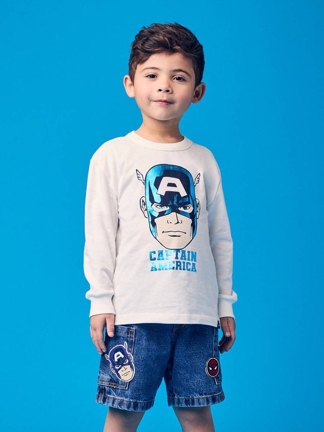 A Camiseta Infantil do Capitão América é a escolha perfeita para quem curte um visual autêntico e cheio de personalidade. A estampa frontal do herói aparece em destaque, trazendo cores vivas e acabamento de qualidade que garante presença em qualquer composição. Produzida em malha macia, proporciona conforto o dia inteiro, permitindo que a criança se mova com leveza durante brincadeiras, escola e passeios. A modelagem moderna facilita combinações com jeans, Bermuda Menino Youccies e peças casuais, criando looks versáteis e estilosos. Resistência, conforto e charme se unem em uma peça que coloca o universo Marvel no guarda-roupa infantil.