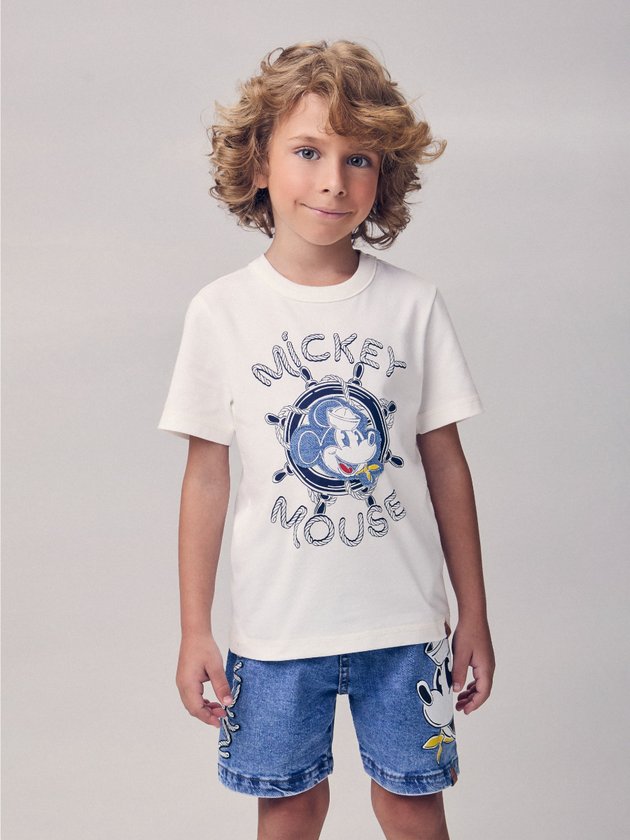 Com um toque náutico e a irreverência do Mickey, a camiseta off do marinheiro é perfeita para meninos que adoram aventuras e estilo. O tom off white traz leveza ao visual, enquanto a estampa exclusiva do Mickey vestido de marinheiro adiciona personalidade e charme. Confortável e fácil de combinar, essa peça é ideal para dias de verão repletos de brincadeiras, passeios e muita diversão à beira-mar ou no parque. Ref.: I2166