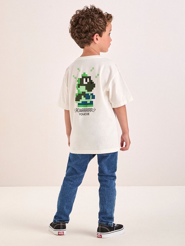 Prepare-se para um rugido pixelado com a Camiseta Pixel Dino! Com uma estampa frontal de dinossauros e um dinossauro pixelado nas costas, essa camiseta off white combina o universo dos games com a paixão pelos dinossauros. Ideal para os pequenos fãs de tecnologia e aventuras! Ref.: I1800