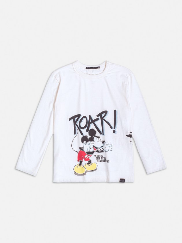 Transforme os dias casuais em momentos de diversão com esta camiseta longa do Mickey! O design branco com a estampa "Roar" e o personagem em ação transmite energia e alegria. Confortável e estilosa, combina com jeans ou calças esportivas para looks despojados.