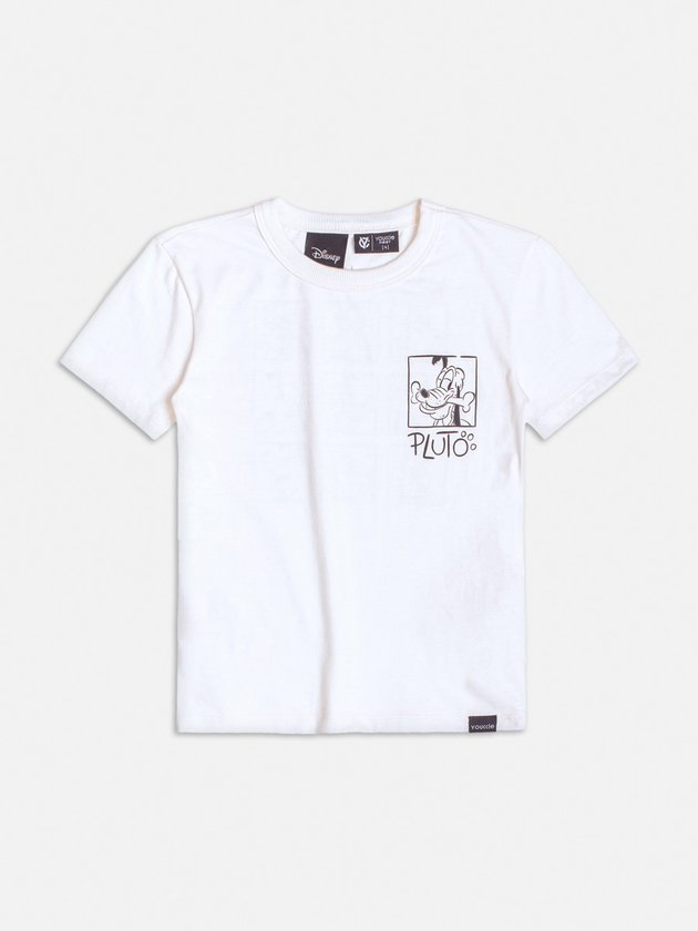 Um charme simples e descontraído! Esta camiseta branca apresenta uma estampa minimalista do Pluto no peito, ideal para compor looks leves e modernos. Confortável e prática, é uma escolha versátil para o dia a dia.