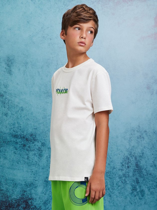 Camiseta branca da Youccie com bordado colorido, trazendo um toque sofisticado e descolado ao visual. Confeccionada em tecido macio e com modelagem regular, é ideal para compor looks leves e casuais, garantindo estilo e conforto.