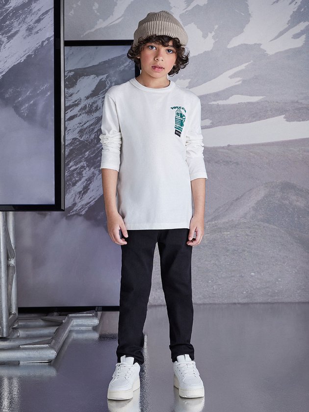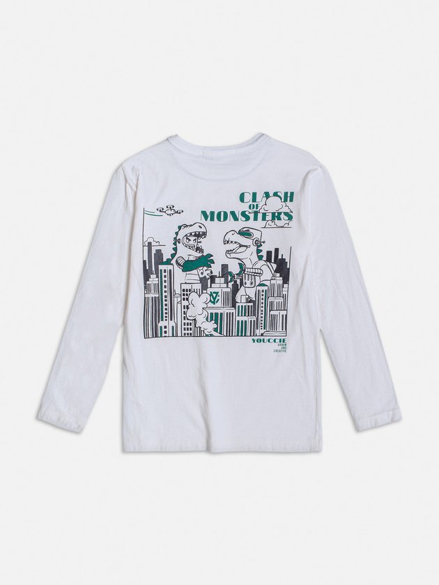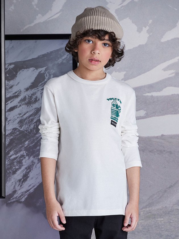 Para os pequenos aventureiros, a camiseta "Clash of Monsters" da Youccie é cheia de personalidade! Em manga longa e com uma estampa divertida de monstros, é ideal para composições casuais. Perfeita para quem ama explorar o mundo da moda com muito estilo e criatividade.