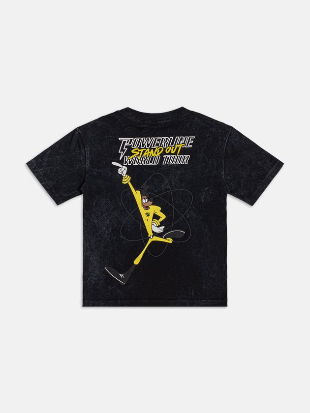 A versão infantil da camiseta Powerline também faz parte da coleção especial Youccie para o Dia dos Pais. Com o mesmo visual marmorizado e modelagem confortável, o destaque fica para a estampa do Powerline nas costas e o logo A Goofy Movie com personagens na frente. Em 100% algodão, com gola em ribana e estampa licenciada Disney, é perfeita para criar looks combinando entre pai e filho, deixando a data ainda mais divertida e cheia de atitude.