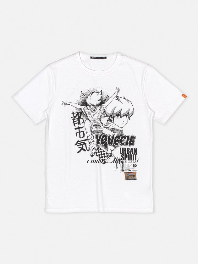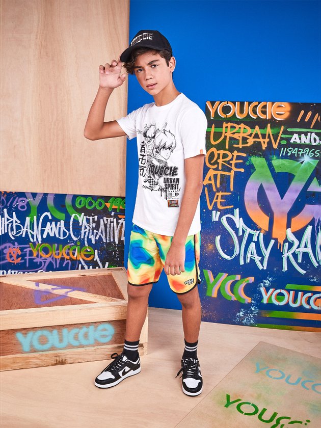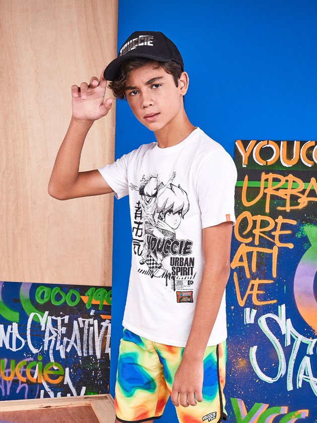 A camiseta infantil Youccie foi desenvolvida no conforto da malha estampa na cor off white. Nos detalhes traz decote redondo, modelagem básica e patch decorativo na parte da frente. Uma peça exclusiva que compõe looks irados. Composição: 100% algodão. Ref.: D1097