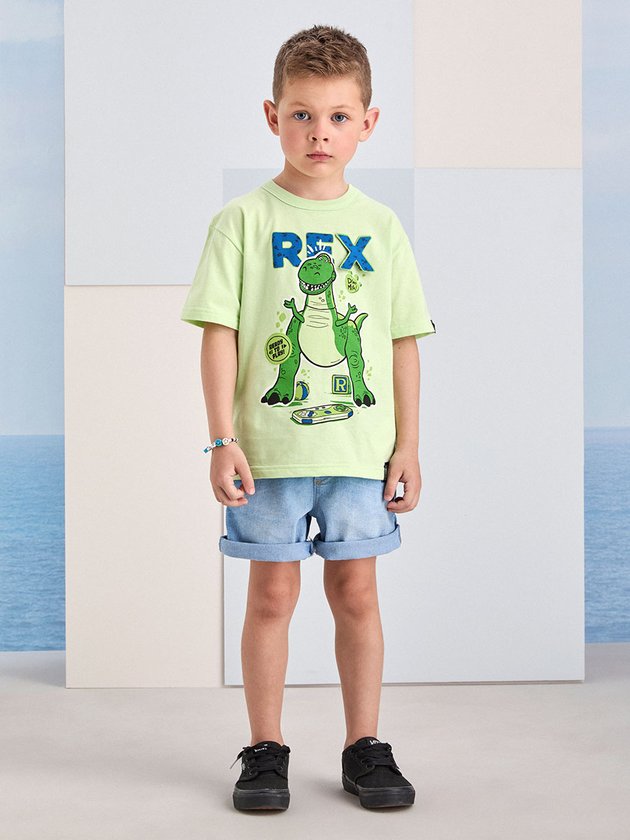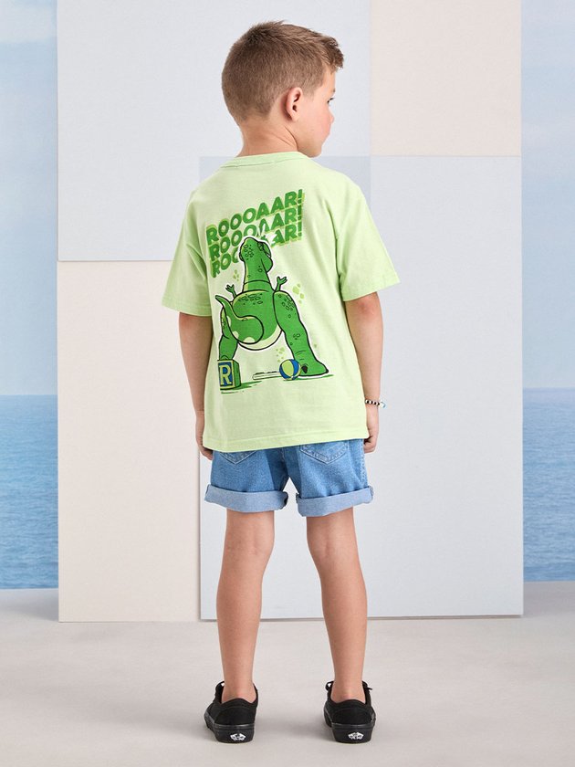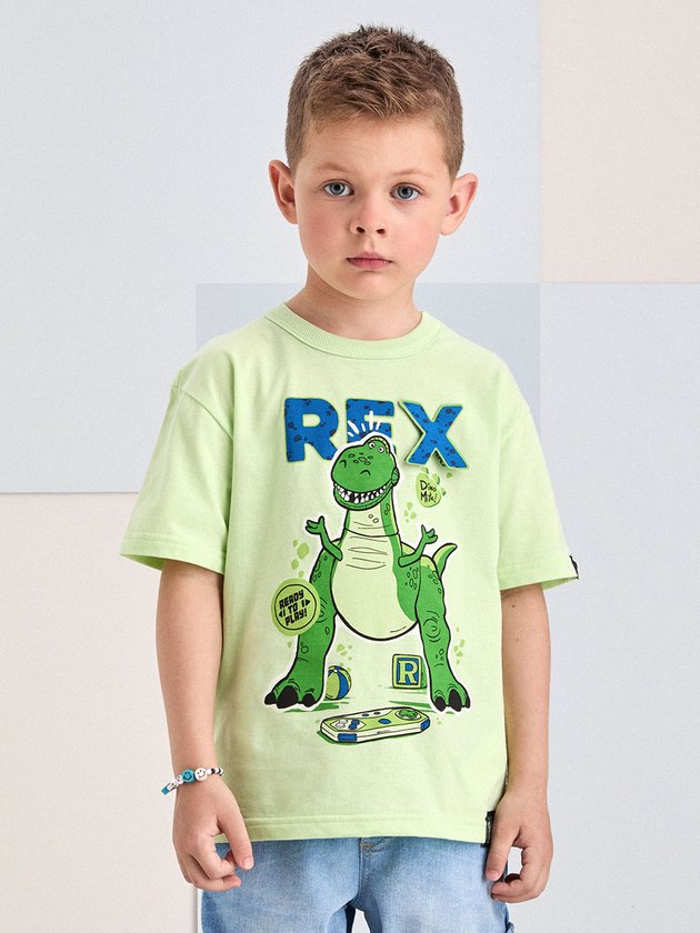 A camiseta verde do Dino Rex infantil Youccie é ideal para meninos aventureiros que adoram dinossauros. Feita em meia malha suave, esta camiseta oferece conforto e liberdade de movimento. A estampa vibrante do Dino Rex adiciona um toque de diversão ao look, perfeita para brincar e explorar. Ref.: I1678