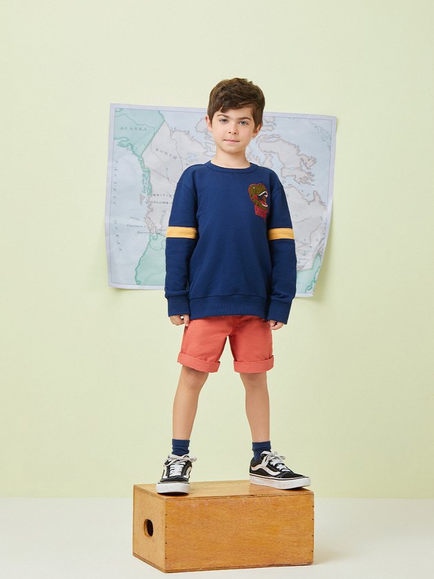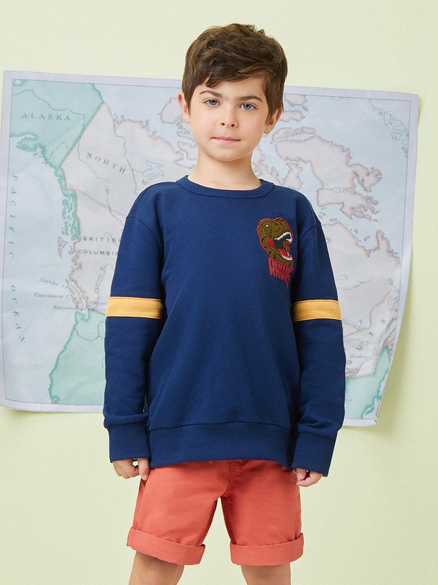 Este casaco de moletom com felpa de menino possui um patch de dinossauro, que traz um toque de diversão à peça. Com modelagem básica e decote em ribana, o casaco garante o conforto necessário para o dia a dia. O friso contrastante na manga adiciona um toque de estilo à peça. Versátil, o casaco é ideal para compor looks despojados e cheios de personalidade. Composição: 67% algodão e 33% poliéster. Ref.: I0952